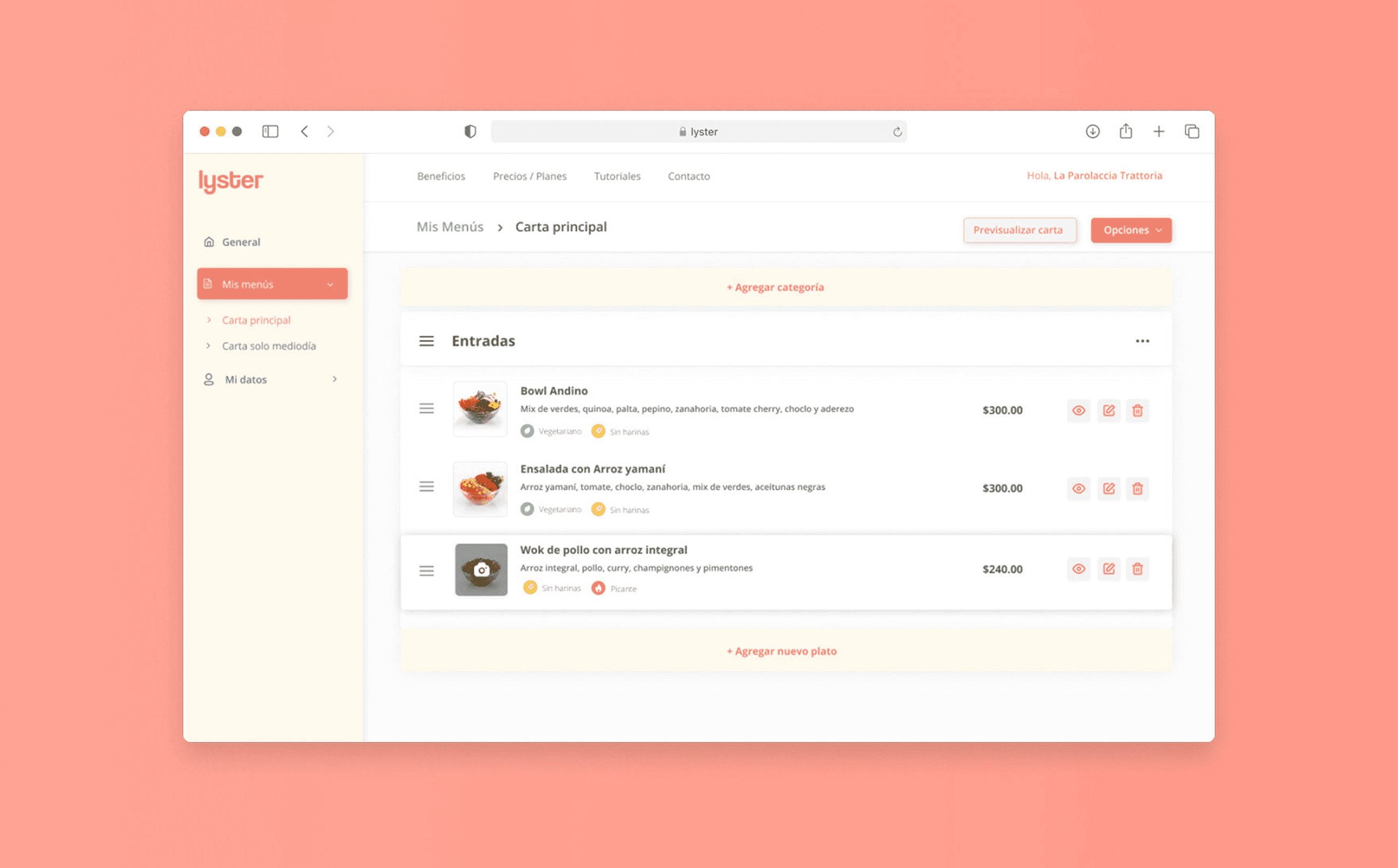 Lyster is a web app designed to connect restaurants with users, making access to their gastronomic offering simple and intuitive.
